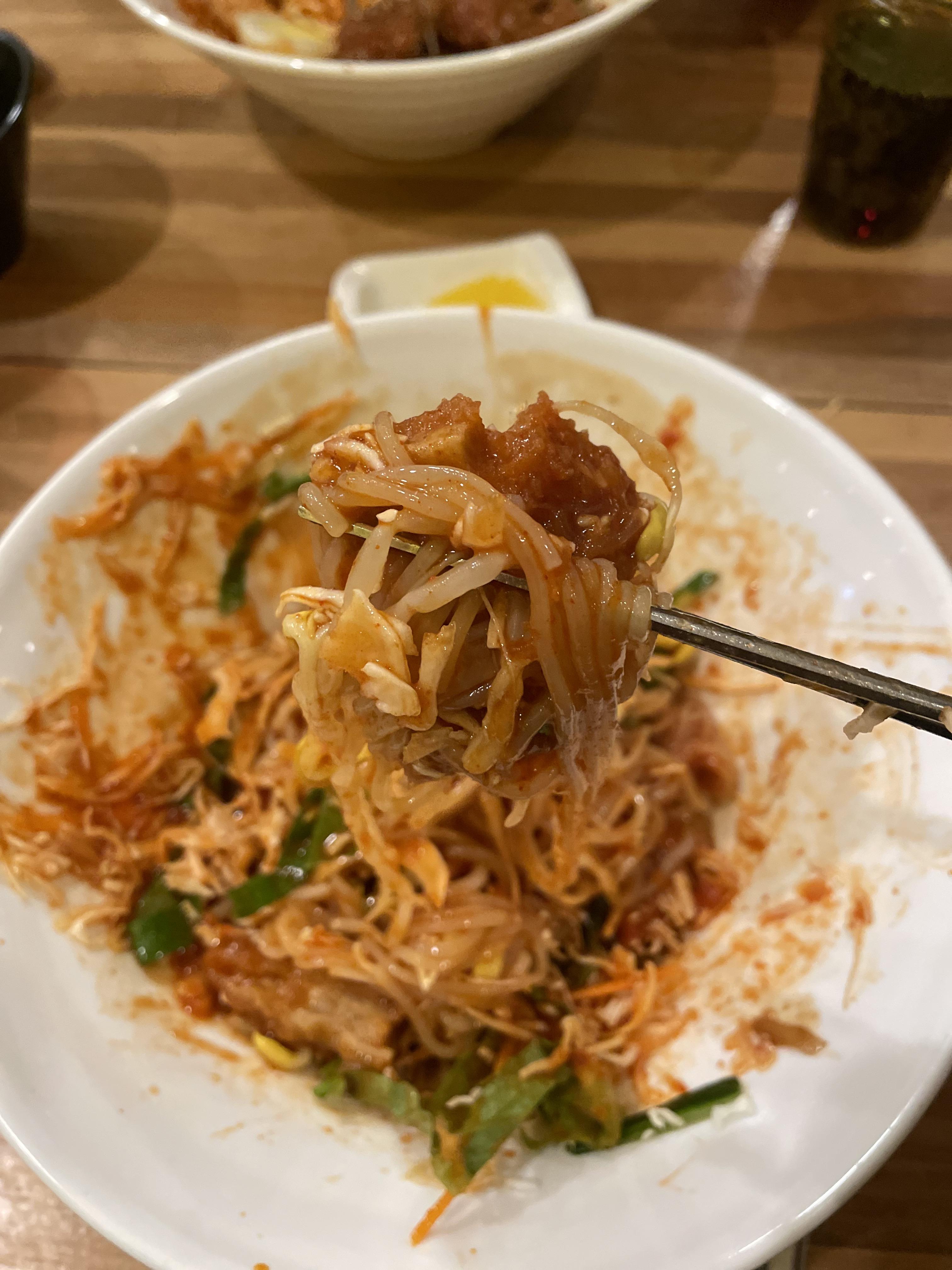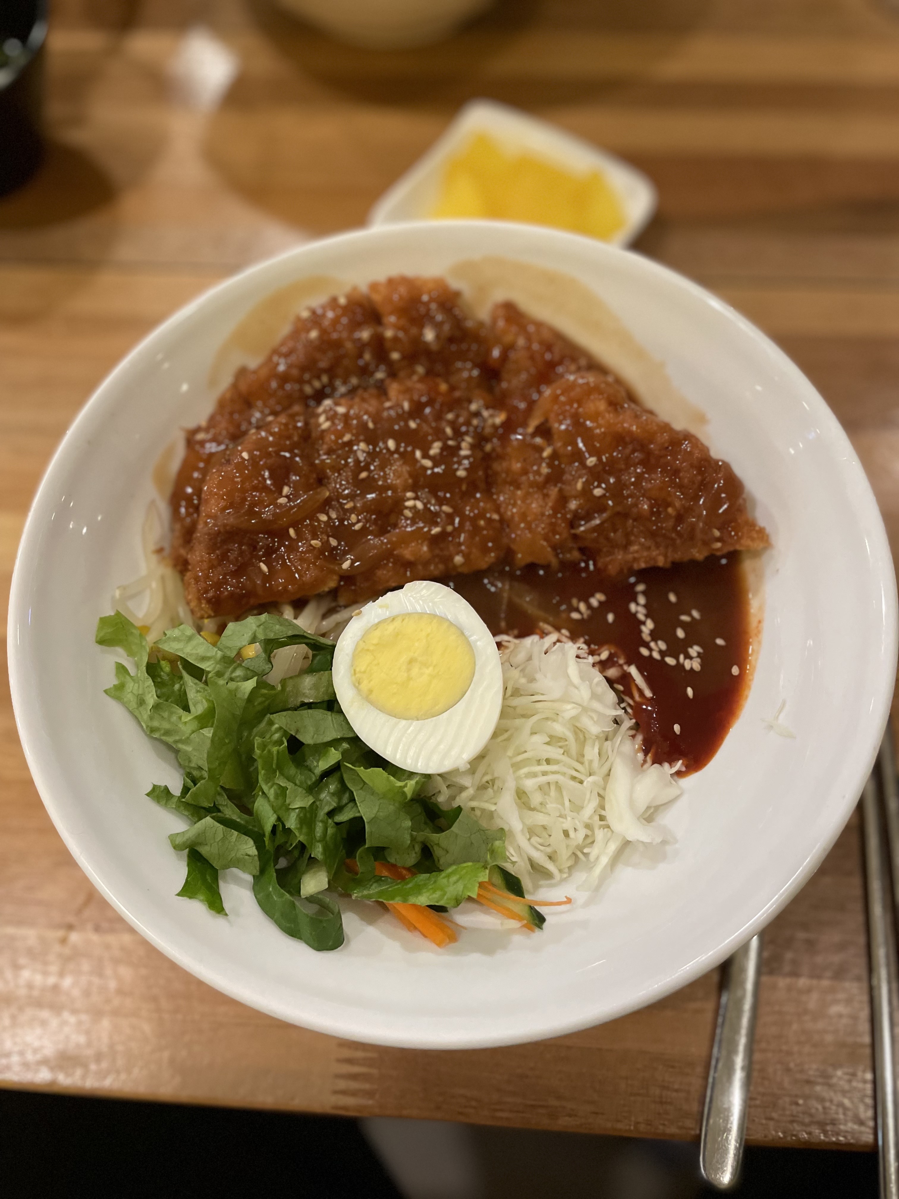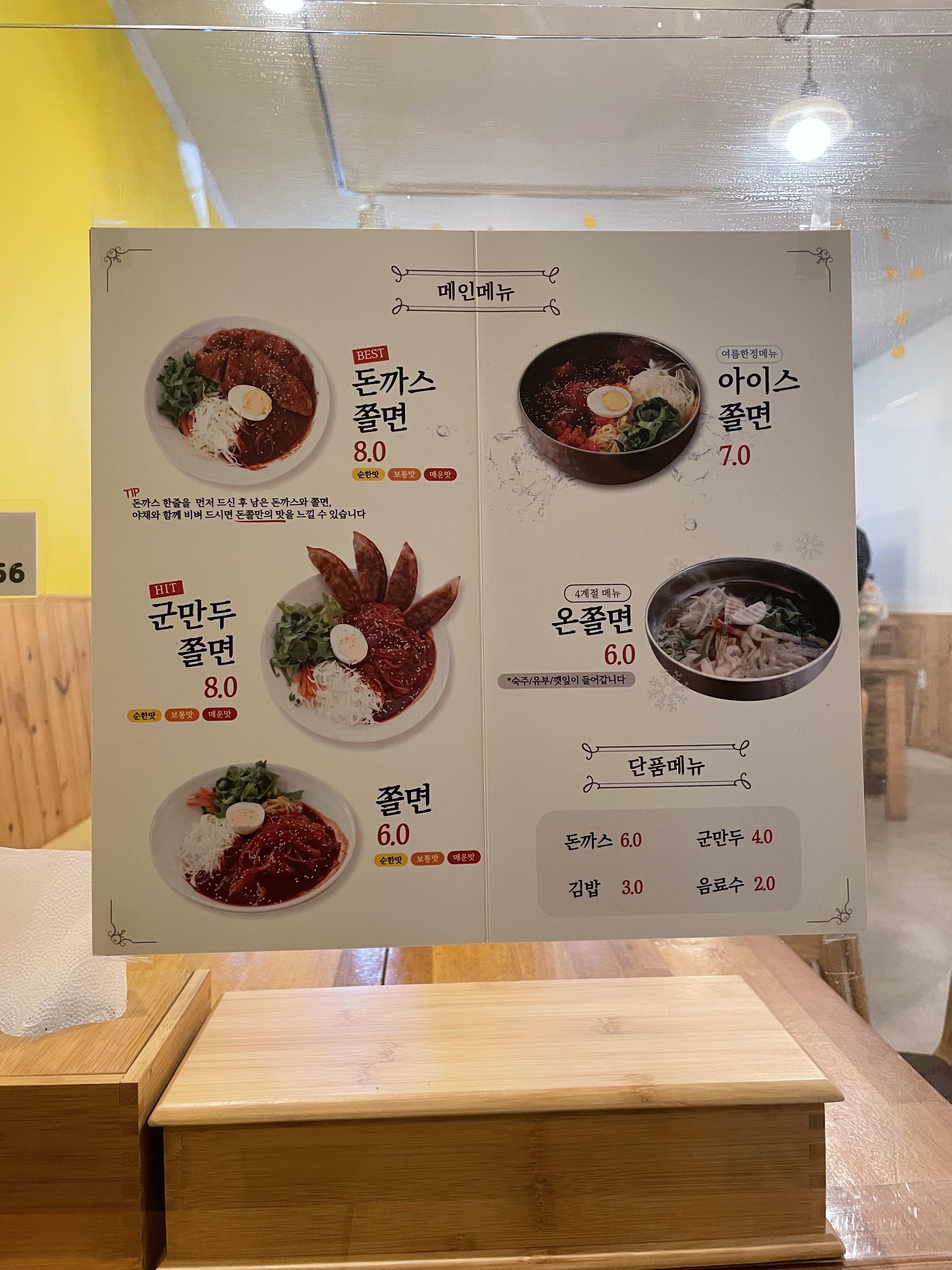 돈가스 쫄면 먹을까 군만두 쫄면 먹을까 고민했는데,