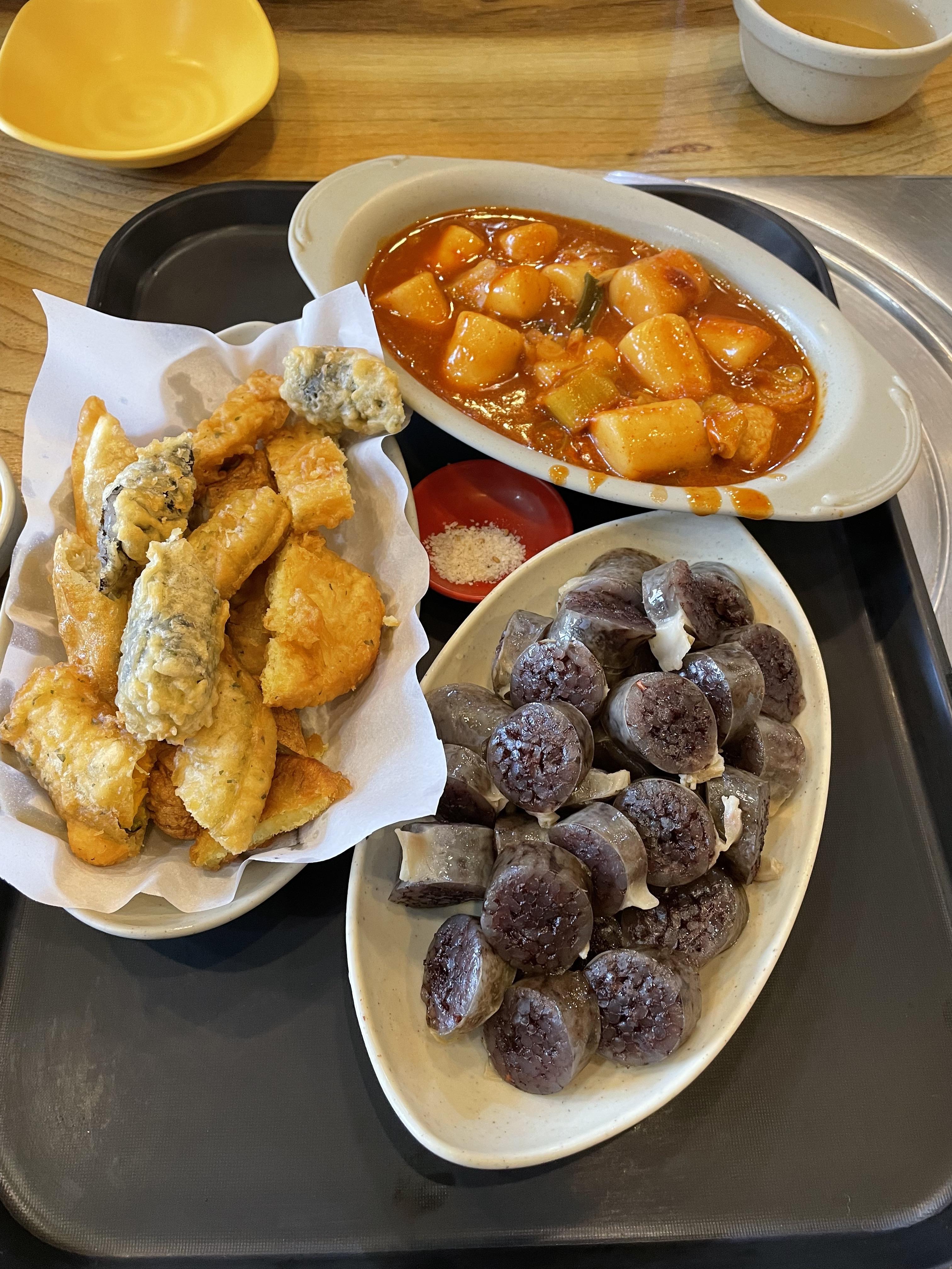 철당간 떡볶이 1, 허브 수제 튀김 1, 순대까지 시켜버렸네요.