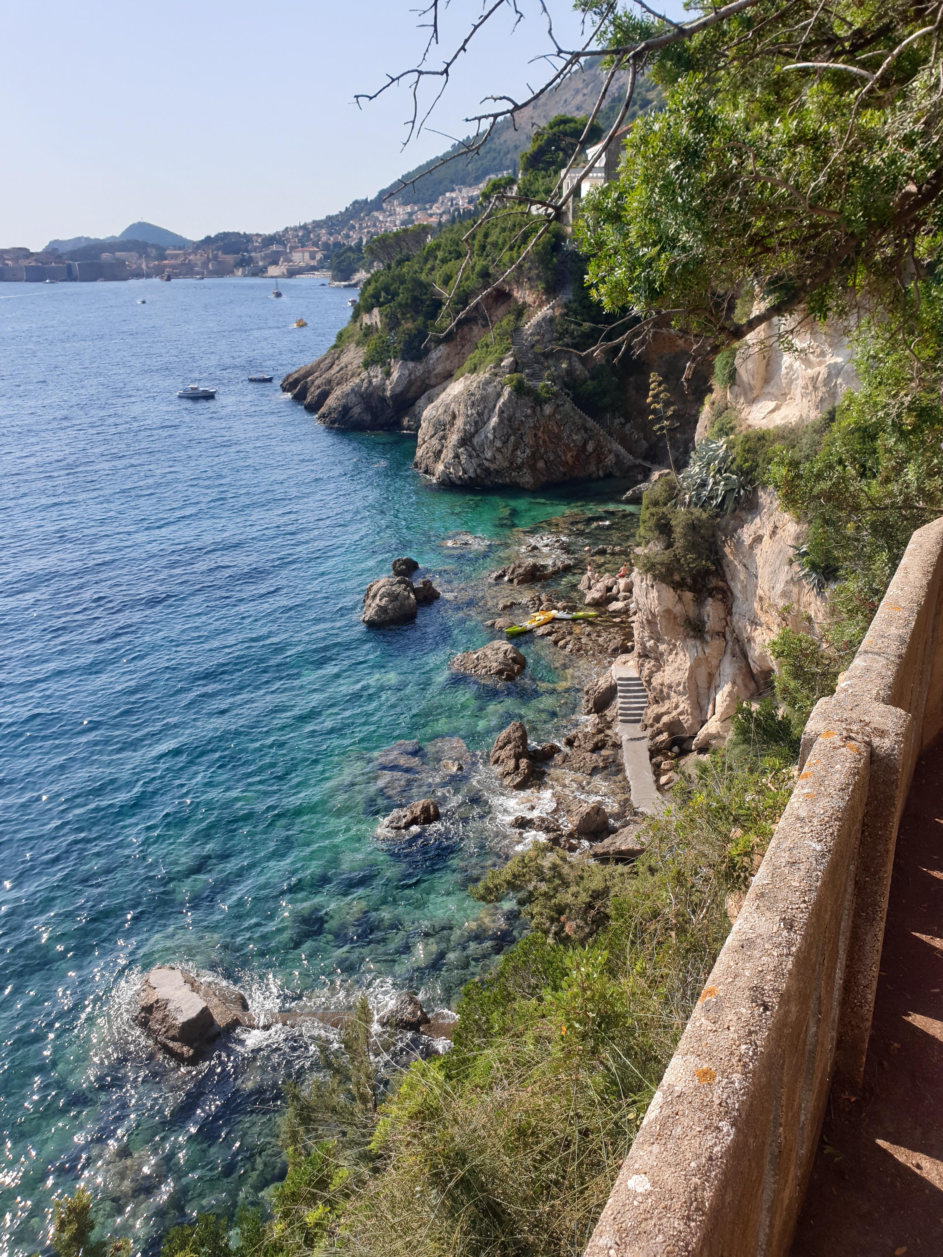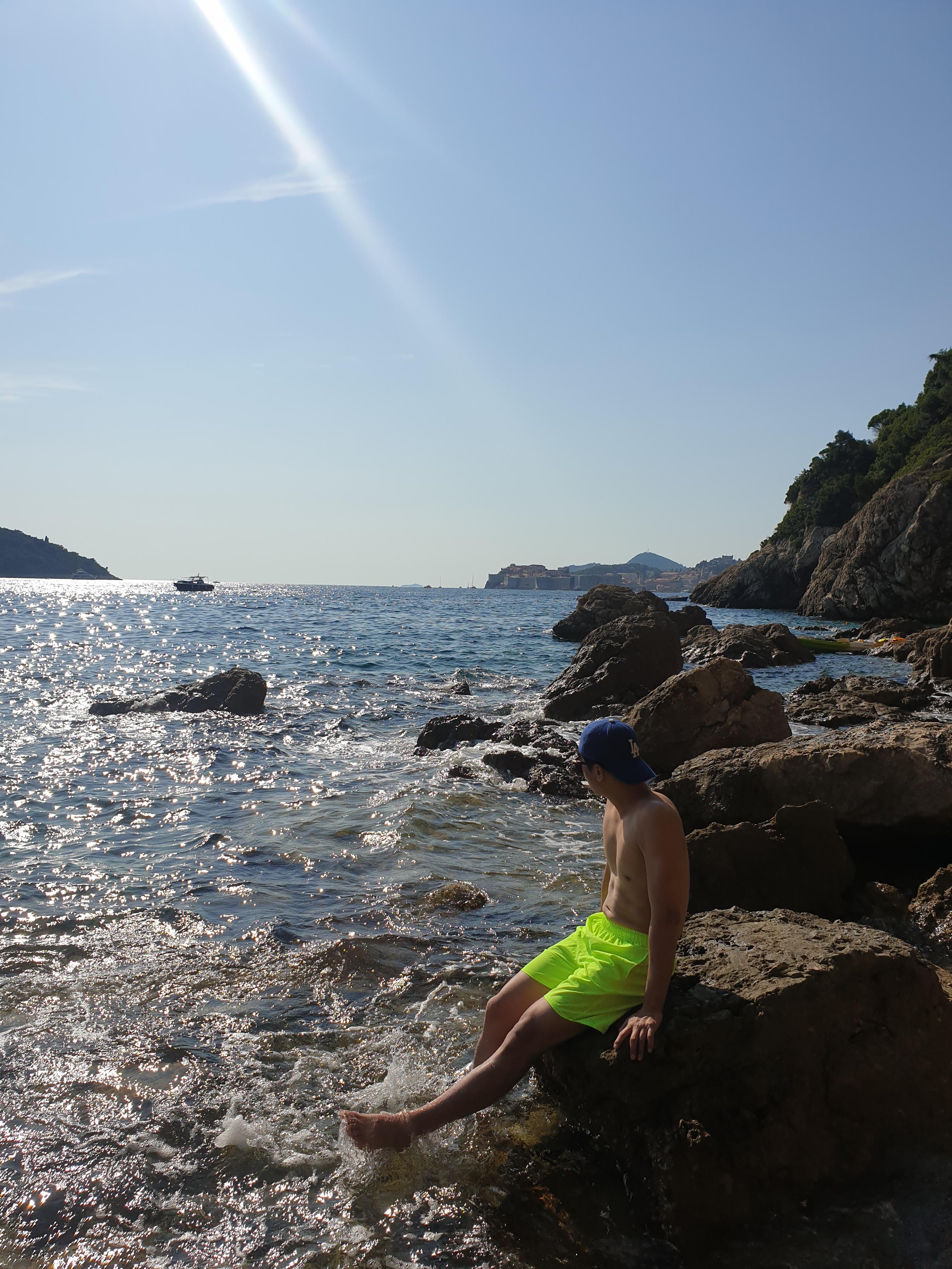무더웠던 성벽 투어를 마치고 바로 바다로 달려갔습니다. 두브로브니크도 사방이 바다이다 보니까 수영할 수 있는 스폿이 많아요. 제가 갔던 곳은 택시기사의 추천을 받아 온 곳인데, 현지인들만 아는 숨겨진 명소 같은 느낌이었어요. 큰 길가에서 계단을 타고 내려가면 크리스털 같은 바다가 펼쳐져요.