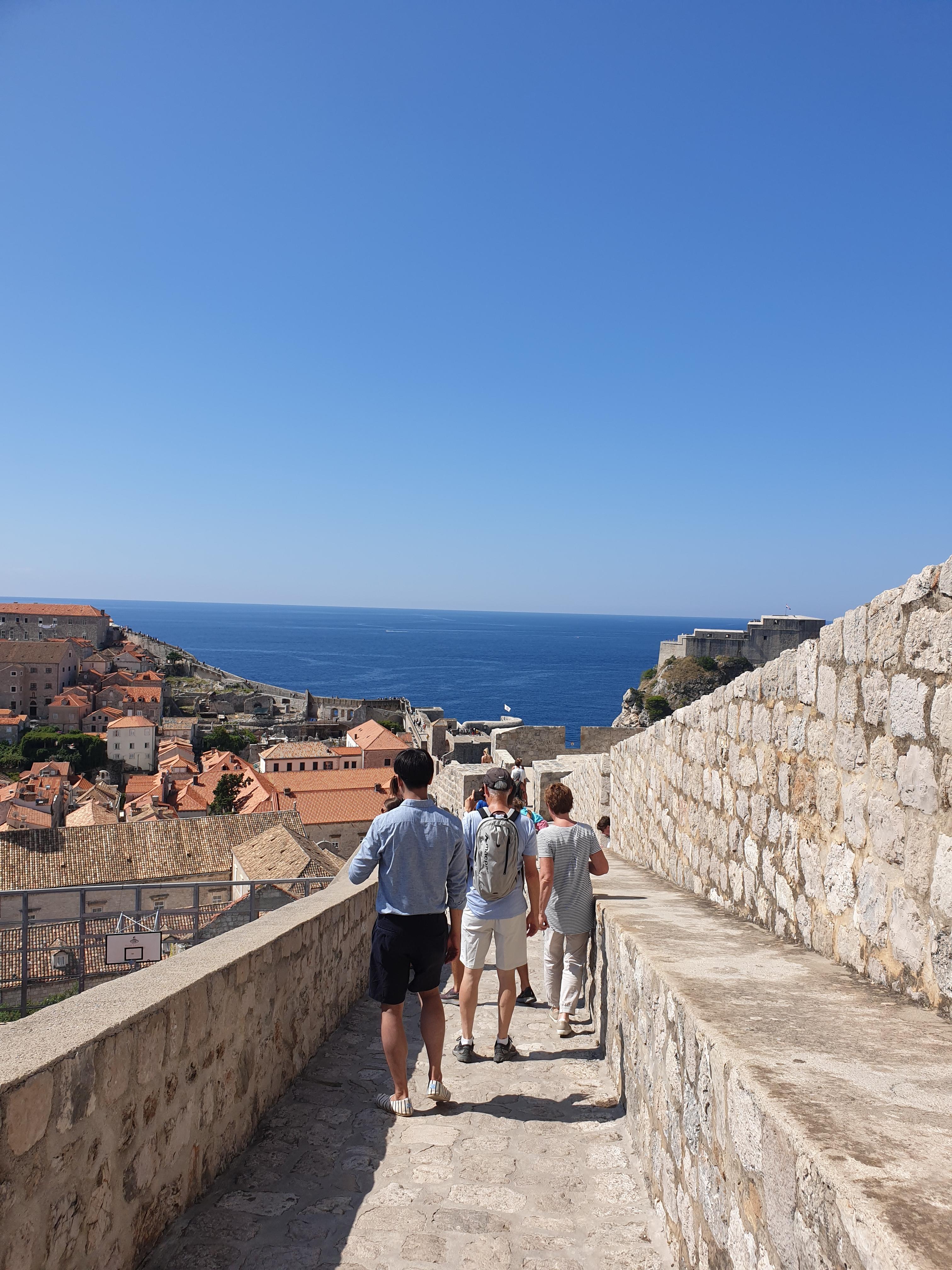 두브로브니크는 긴~성벽으로 둘러 쌓여있는 마을이에요. 왕좌의 게임 촬영지로도 유명한 곳이죠. 보신 분들은 아시겠지만 뭔가 킹스랜드 느낌이 나지 않나요? 사실 왕좌의 게임은 유럽 전역에서 촬영했기 때문에 촬영지가 엄청 여러 나라에 다양하게 있어요. 각설하고, 숙소에서 성벽 투어를 시작하는 입구까지는 걸어서 20분 정도가 소요됐습니다. 제가 갔을 때는 한 여름이라 오후에 투어를 하면 힘들다는 글들을 많이 봤어요. 그래서 아침 첫 타임으로 예약해서 빨리 출발했습니다.