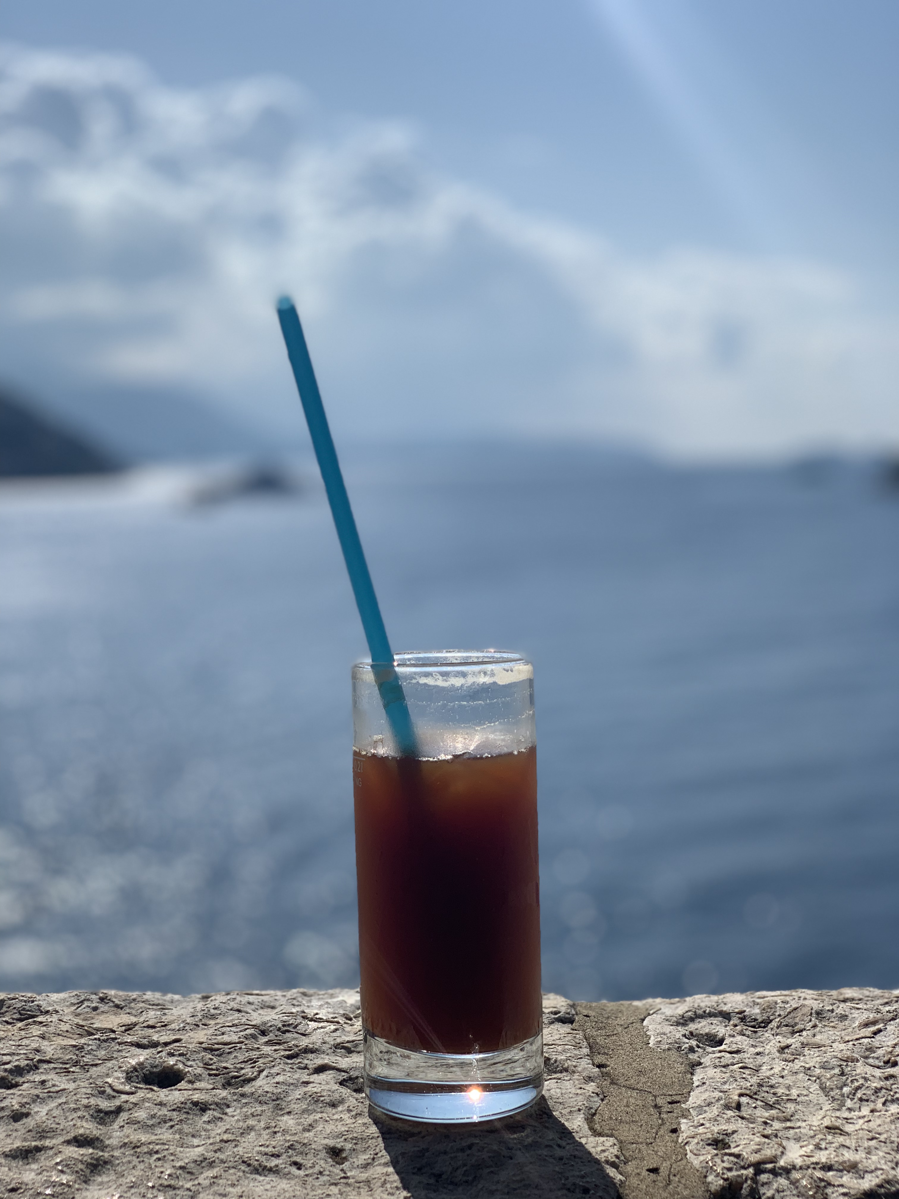 성벽 투어를 하다 보면 중간에 카페가 있어요. 더위를 참지 못하고 중간에 카페에 들러서 시원한 음료로 에너지를 보충했어요. 성벽 안에 카페가 있다 보니 성벽 밖 바다가 바로 보여요. 성벽 위에 커피를 올리고 사진을 찍었더니 엽서 속 사진 같네요.