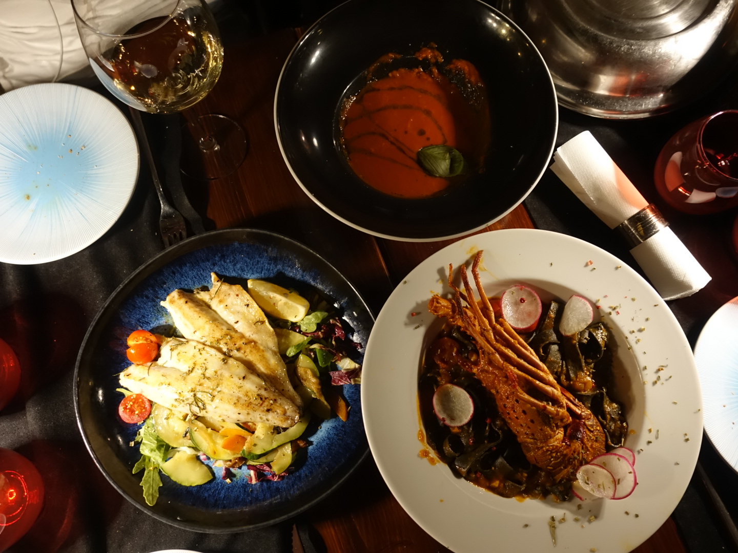 토마토 수프, 대구 요리, 랍스터를 시켰습니다. 크로아티를 여행하며 해산물을 굉장히 많이 먹었는데요, 특히 생선 요리를 많이 먹었어요. 저는 해외여행 가면 생선요리를 찾아 먹는 스타일은 아니었는데 크로아티아 여행에서는 찾아먹게 되더라고요. 생선 자체가 싱싱해서 그런지 흰 살이 입안에 들어가면 사르르 녹아버려요. 어김없이 이 날도 완벽한 저녁이었고, 맛있다, 행복하다는 말의 반복이었어요.